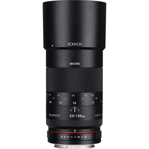 Home in on close-up subjects with the Canon EF mount 100mm f/2.8 Macro Lens from Rokinon, which affords life-size 1:1 magnification along with a minimum focusing distance of 1'. This manual focus portrait-length lens also incorporates one high refractive index element and one extra-low dispersion element into its design to reduce chromatic aberrations and distortions throughout the focusing range. An Ultra Multi-Coating has also been applied to minimize flare and ghosting for increase contrast and color neutrality. A long focal length lens with close focusing abilities and a high magnification ratio, this macro lens is ideal for making close-up, detailed images of nearby subjects.